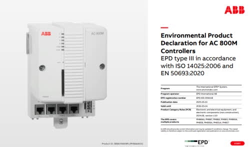 ABB는 AC 800M 계열 컨트롤러에 대해 최초로 환경성적표지(Environmental Product Declaration, EPD) 인증을 취득했다고 밝혔다.