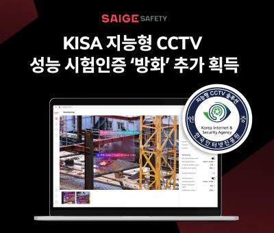 세이지(SAIGE, 공동대표 박종우·홍영석)는 AI 기반 안전 모니터링 솔루션 ‘세이지 세이프티(SAIGE SAFETY)’가 한국인터넷진흥원(KISA)의 지능형 CCTV 성능 시험인증 중 ‘방화’ 분야 인증을 추가로 획득했다고 밝혔다.