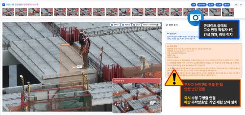 안전관리 분야에서 혁신상을 받은 이 기술은 실시간 드론 관제 시 AI 기술을 접목해 건설 현장 노동자 추락사고를 일으킬 수 있는 가시설 설계나 추락 위험 부자재 등의 위험 요소를 자동 탐지해 플랫폼에 알려 공사 현장의 위험 요소를 예방하고 즉각적으로 대응할 수 있도록 한다.