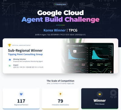 TPCG는 전 세계 117개 유망 AI 기업이 격돌한 글로벌 AI 에이전트 경진대회 ‘2025 Agent Build Challenge’에서 코리아 위너(Korea Winner)로 선정된 데 이어 구글 클라우드 코리아(Google Cloud Korea)가 발표한 ‘올해의 Google Cloud AI Innovation Partner’를 수상했다고 30일 밝혔다.