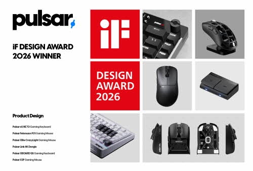 에이플러스엑스(대표 심건희)의 글로벌 게이밍 기어 브랜드 Pulsar Gaming Gears(펄사 게이밍 기어)가 세계적 권위의 국제 디자인 시상식인 ‘iF Design Award 2026’에서 제품 디자인 부문 본상을 수상했다.