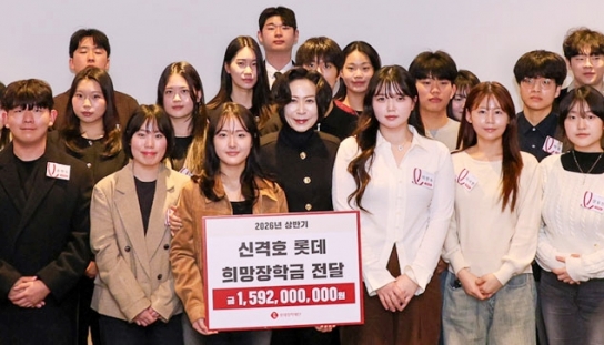 롯데장학재단(이사장 장혜선)은 지난 19일 서울 잠실 롯데월드타워 상전 신격호기념관에서 ‘2026년 상반기 신격호 롯데 희망장학금’ 전달식을 갖고 희망장학생 398명에게 총 15억 9,200만 원의 장학금을 전달했다고 밝혔다. 장학금은 졸업 시까지 학기당 400만 원씩 지원되며, 학업보조비로 활용된다.