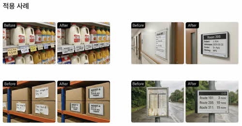 전자잉크 기반 디스플레이는 장시간 화면 유지 시 추가 전력 소모가 거의 없는 구조로, 장기 운영 환경에서 에너지 효율을 고려한 적용이 가능한 것이 특징이다. 이러한 특성은 반복적인 인쇄 및 폐기 과정을 줄일 수 있는 운영 방식으로도 활용될 수 있다.