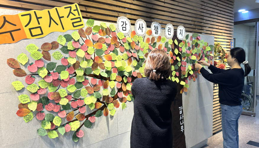마지막으로 교회 1층 조이홀에 설치된 커다란 ‘감사나무’에 한 해 동안 감사한 것, 매일 매일 감사한 내용을 종이에 써서 붙이는 이벤트도 마련된다. 감사나무에는 많은 성도들이 한 해 동안의 감사 제목들을 붙였는데 유치부 아이가 ‘할아버지 예수님 믿게 해주셔서 감사합니다’라고 붙이기도 하고, 질병을 치유해 주심에 감사하고, 특히 가정 안에 관계 회복과 가족 구원에 대한 감사제목이 많다.