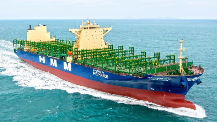 HMM은 메탄올 연료 컨테이너 1호선 ‘HMM 그린호’를 시작으로 내년 상반기까지 총 9척을 순차적으로 인도받을 예정이다.