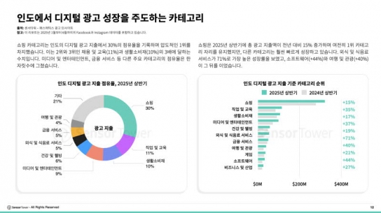 세계 인구 수 1위인 인도의 디지털 광고 시장의 상황을 알아볼 수 있는 자료가 나왔다. 센서타워(Sensor Tower)가 메타 채널을 기반으로 인도 디지털 광고 시장을 분석해 발표한 ‘2025년 인도 디지털 광고 현황’ 리포트가 그것이다.