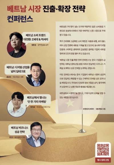 이번 컨퍼런스는 단순한 정보 제공을 넘어 현장에서 바로 적용할 수 있는 전략과 통찰을 제시한다. 베트남 진출을 준비하거나 현지 비즈니스 확장을 모색하는 기업에 구체적인 실행 해법을 제안할 예정이다.