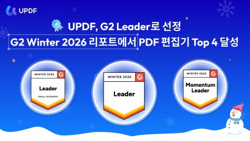 UPDF가 G2 리더(G2 Leader)로 선정되며, G2 2026 겨울 보고서에서 글로벌 PDF 에디터 상위 4위에 이름을 올리는 중요한 성과를 달성했다.