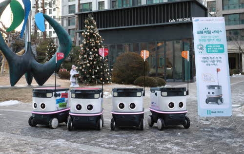 삼성물산 건설부문(이하 삼성물산)이 배달 플랫폼 ‘요기요’와 연계해 아파트 세대 현관까지 음식을 배달하는 자율주행 배달 로봇 혁신 서비스를 확장 운영한다.