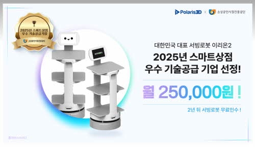 ‘스마트상점 기술보급 사업’은 소상공인의 운영 효율을 높이고 디지털 전환을 촉진하기 위해 검증된 기술을 보유한 기업을 선정해 현장 도입을 지원하는 정부 주도 사업이다. 폴라리스쓰리디는 2025년 서빙로봇 분야에서 기술 완성도와 현장 적용성, 실사용 성과를 인정받아 2024년에 이어 우수 기술공급 기업으로 2년 연속 이름을 올렸다.